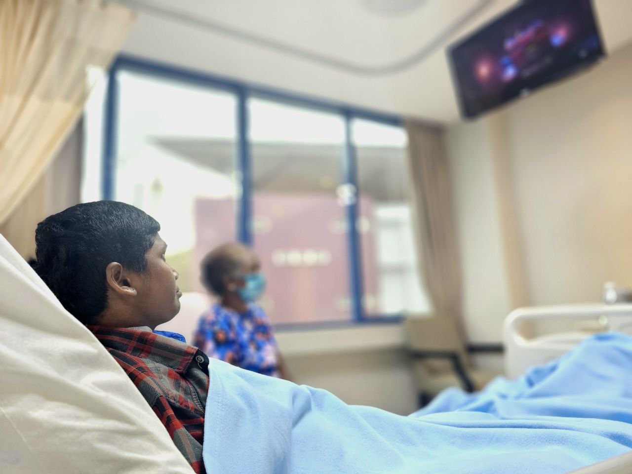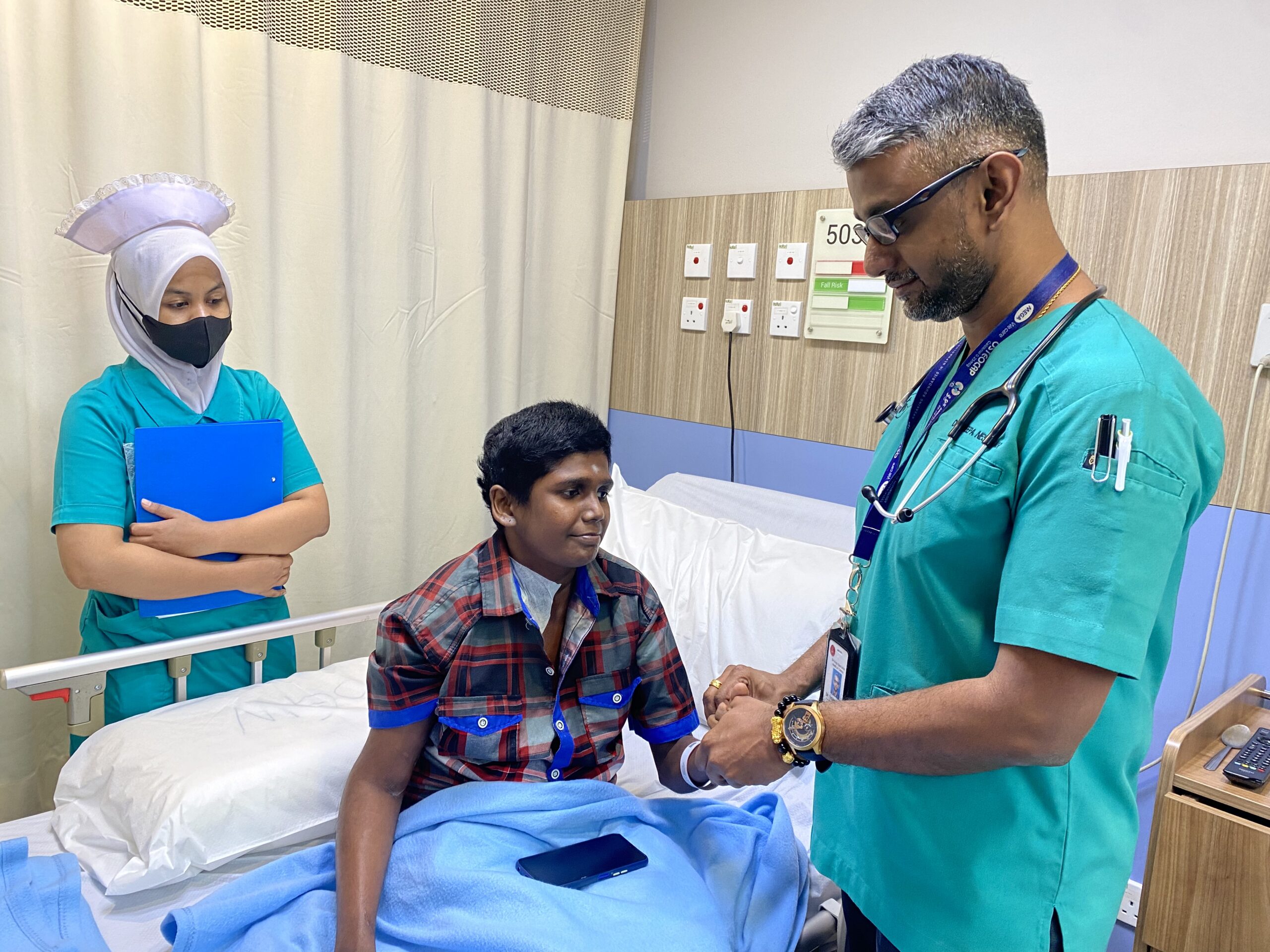 Dr. Theepa is closely observing his patient’s condition in the ward
