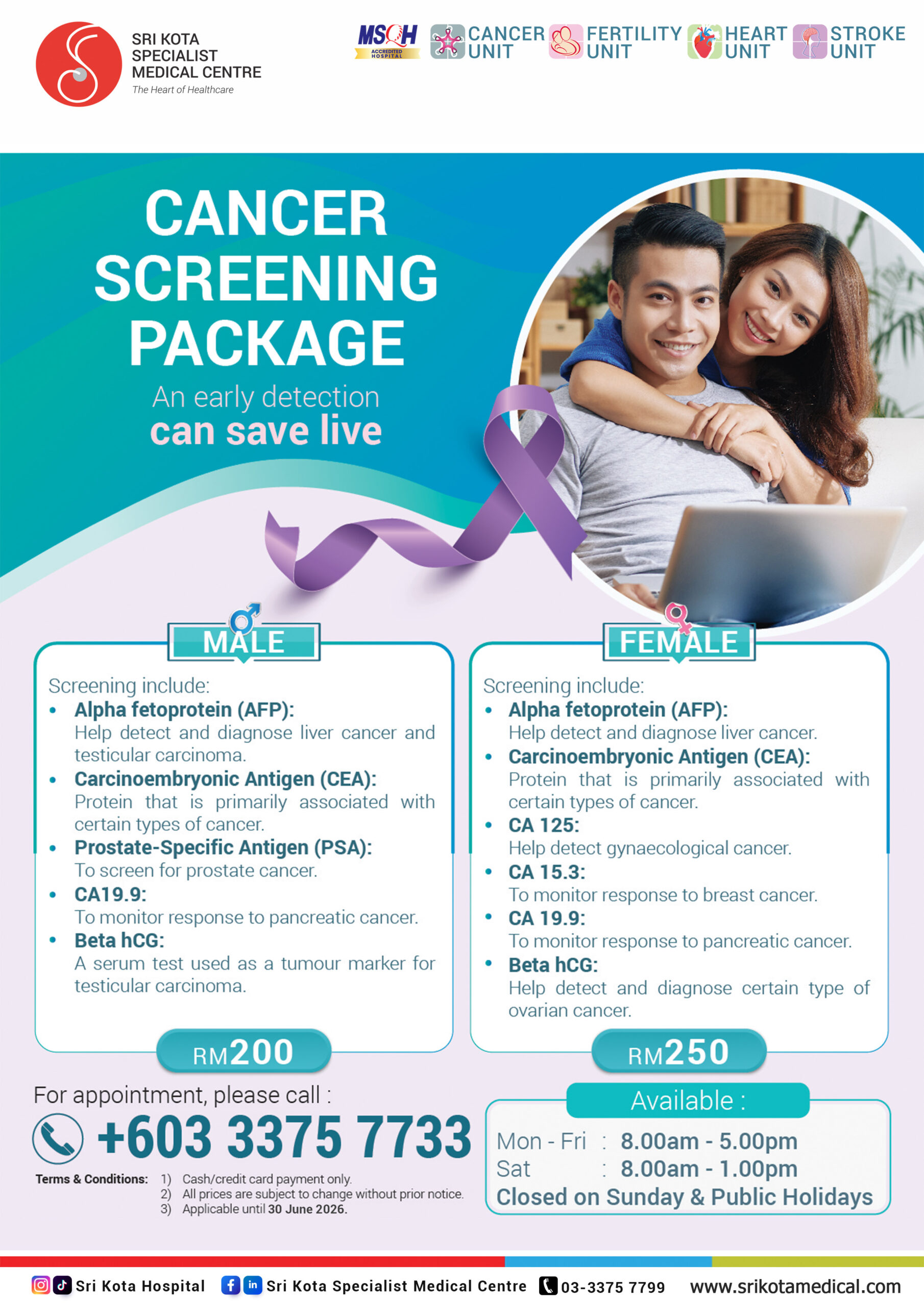 For more information, please call our Health Screening Unit at 03-3375 7733. Thank you