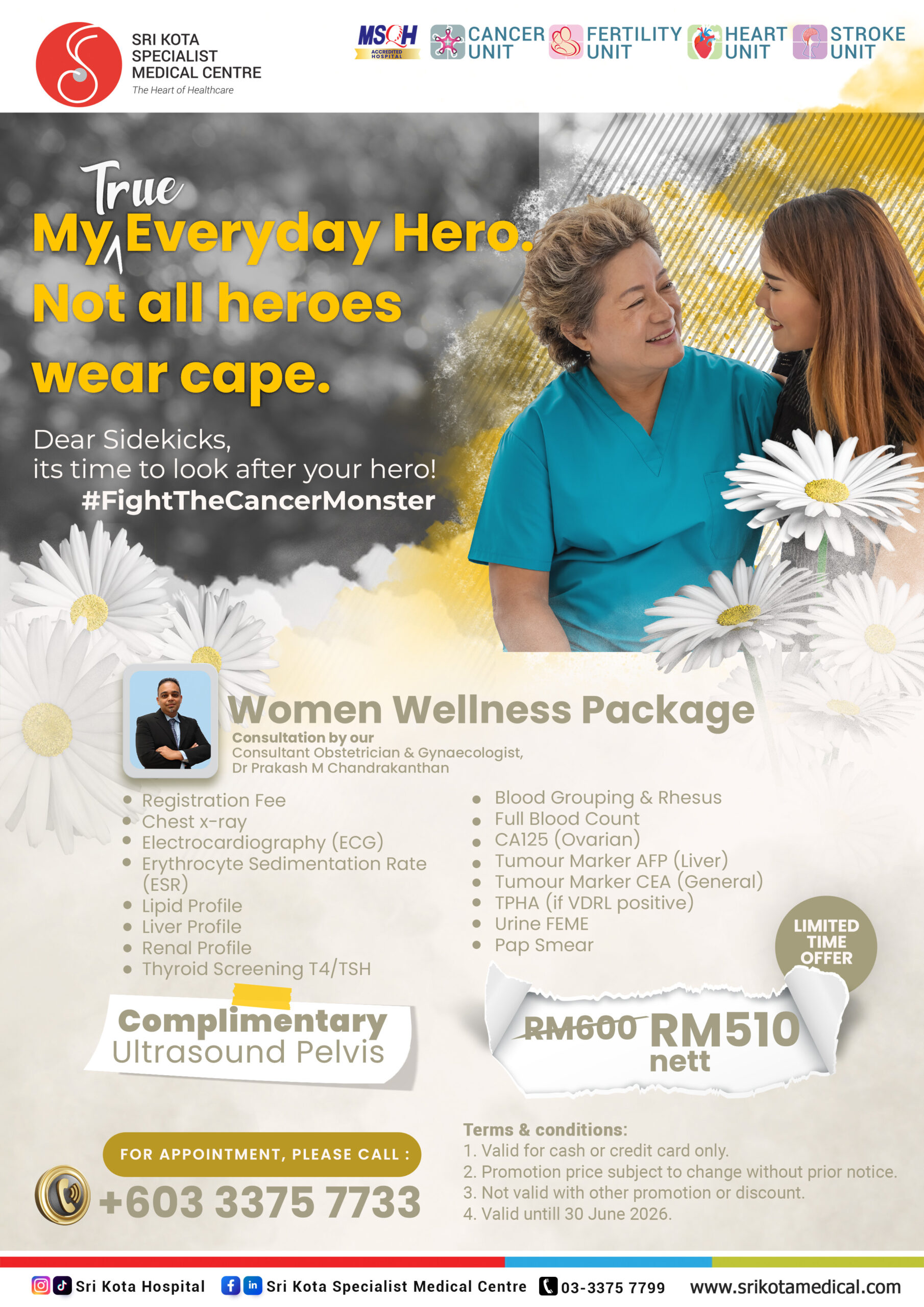 Get a 15% discount, when you choose our Women Wellness Package at RM510 ONLY!